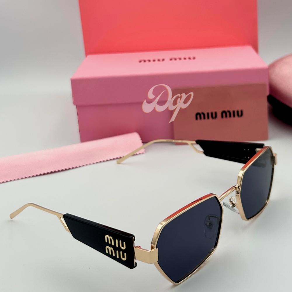 نظارة ميو ميو ذهبي تصميم عصري بعدسة سوداء