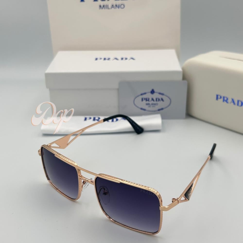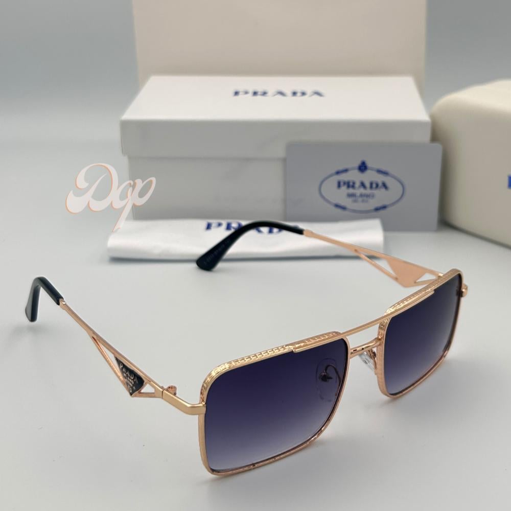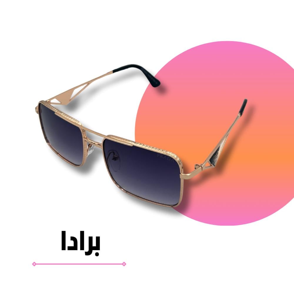 نظارة برادا ذهبي معدني مستطيل بعدسة أسود مدرج